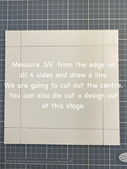 STEP 5:   CREATE THE FRONT FRAME OF YOUR CARD BUT MEASURING 0.75’ ON ALL  4 SIDES AND DRAW LINES AS SHOWN. YOU WILL NOW REMOVE THE CENTRE PANEL TO CREATE A FRAME.